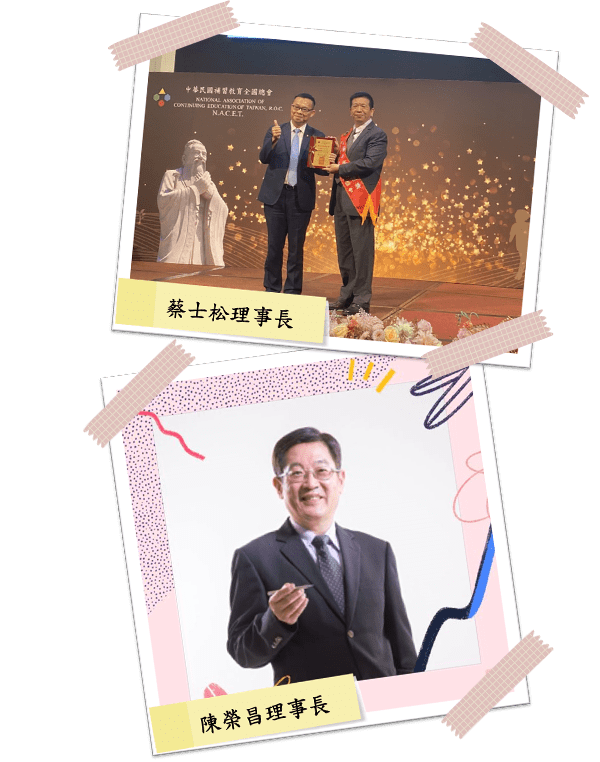 陳榮昌理事長積極參與地方教育工作,在新竹縣推動社教工作,深入家庭,熱心公益,並獲得多次表揚。